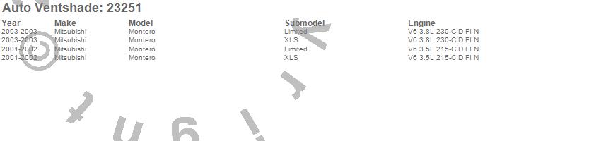 Below is an abbreviated list of applications for the Bugflector Stone/Bug Deflector.Montero, Mitsubishi, 2003, 2002, 2001
