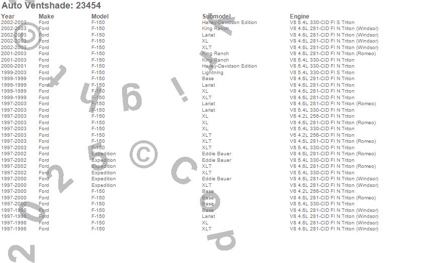 Below is an abbreviated list of applications for the Bugflector Stone/Bug Deflector.Expedition, F-150, Ford, 2003, 2002, 2001, 2000, 1999, 1998, 1997