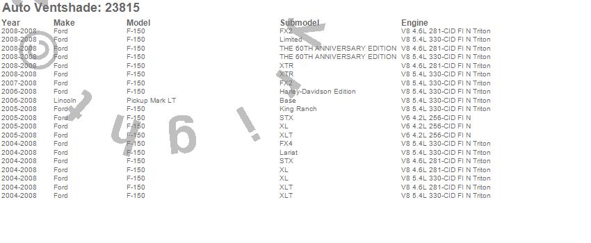 Below is an abbreviated list of applications for the Bugflector Stone/Bug Deflector.F-150, Mark LT, Ford, Lincoln, 2008, 2007, 2006, 2005, 2004