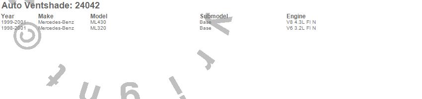 Below is an abbreviated list of applications for the Bugflector II Stone/Bug Deflector.ML320, ML430, Mercedes-Benz, 2001, 2000, 1999, 1998