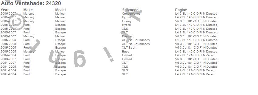 Below is an abbreviated list of applications for the Bugflector II Stone/Bug Deflector.Escape, Mariner, Ford, Mercury, 2007, 2006, 2005, 2004, 2003, 2002, 2001