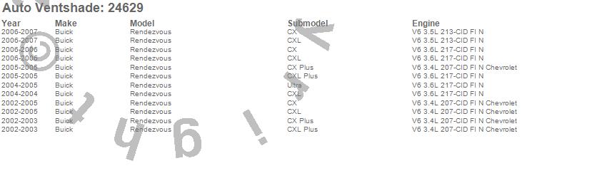 Below is an abbreviated list of applications for the Bugflector II Stone/Bug Deflector.Rendezvous, Buick, 2007, 2006, 2005, 2004, 2003, 2002