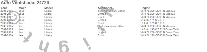 Below is an abbreviated list of applications for the Bugflector II Stone/Bug Deflector.Liberty, Jeep, 2007, 2006, 2005, 2004, 2003, 2002