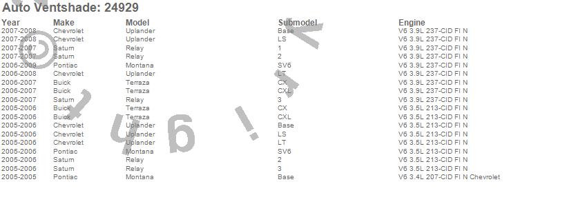 Below is an abbreviated list of applications for the Bugflector II Stone/Bug Deflector.Montana, Relay, Terraza, Uplander, Buick, Chevrolet, Pontiac, Saturn, 2009, 2008, 2007, 2006, 2005