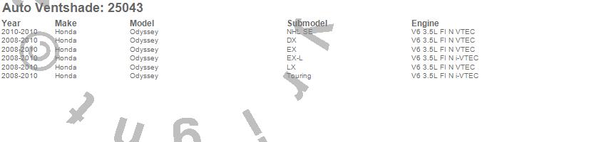 Below is an abbreviated list of applications for the Bugflector II Stone/Bug Deflector.Odyssey, Honda, 2010, 2009, 2008