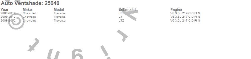 Below is an abbreviated list of applications for the Bugflector II Stone/Bug Deflector.Traverse, Chevrolet, 2012, 2011, 2010, 2009