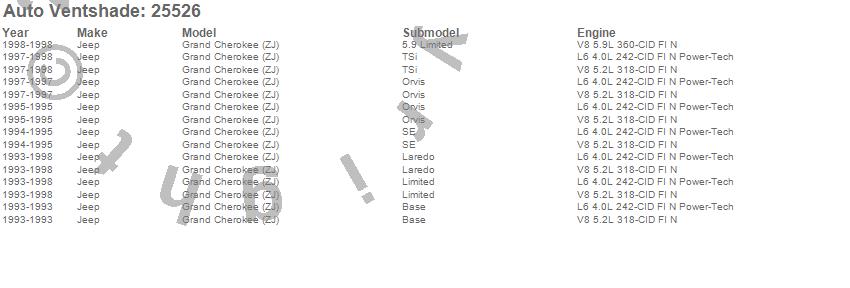 Below is an abbreviated list of applications for the Bugflector II Stone/Bug Deflector.Grand Cherokee (ZJ), Jeep, 1998, 1997, 1996, 1995, 1994, 1993