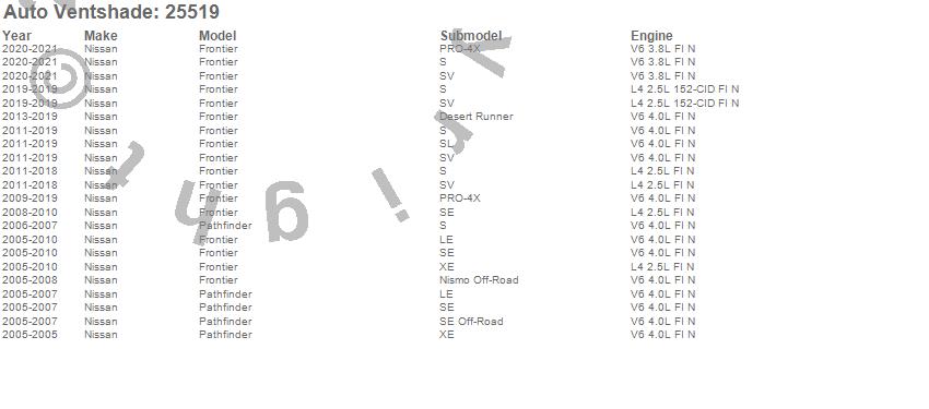 Below is an abbreviated list of applications for the Bugflector II Stone/Bug Deflector.Frontier, Pathfinder, Nissan, 2021, 2020, 2019, 2018, 2017, 2016, 2015, 2014, 2013, 2012, 2011, 2010, 2009, 2008, 2007, 2006, 2005