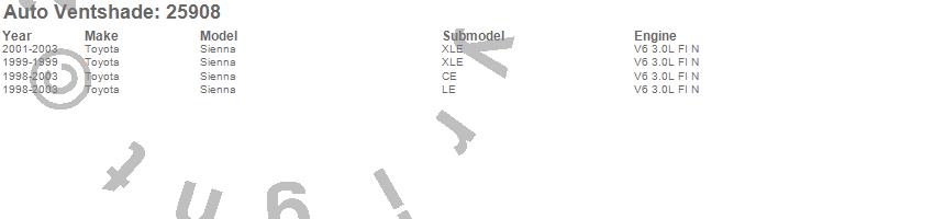 Below is an abbreviated list of applications for the Bugflector II Stone/Bug Deflector.Sienna, Toyota, 2003, 2002, 2001, 2000, 1999, 1998