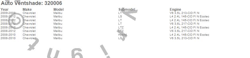 Below is an abbreviated list of applications for the Aeroskin Smoke Hood Protector.Malibu, Chevrolet, 2012, 2011, 2010, 2009, 2008