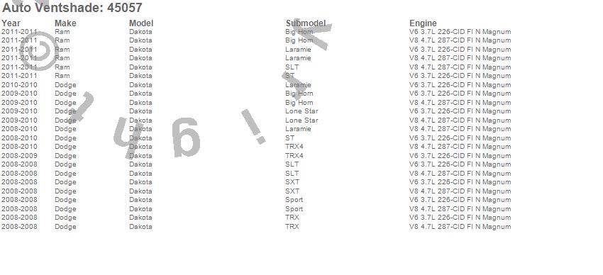 Below is an abbreviated list of applications for the Bugflector II Stone/Bug Deflector.Dakota, Dodge, Ram, 2011, 2010, 2009, 2008