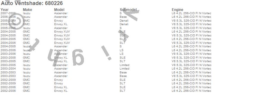 Below is an abbreviated list of applications for the Chrome Hood Shield.Ascender, Envoy, Envoy XL, Envoy XUV, GMC, Isuzu, 2009, 2008, 2007, 2006, 2005, 2004, 2003, 2002