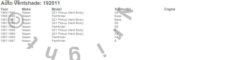 Below is an abbreviated list of applications for the Ventvisor In-Channel Deflector 2 pc..D21 Pickup (Hard Body), Pathfinder, Nissan, 1997, 1996, 1995, 1994, 1993, 1992, 1991, 1990, 1989, 1988, 1987