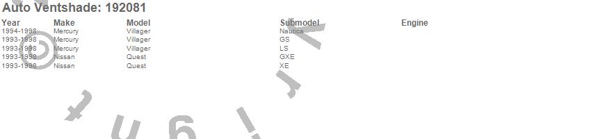 Below is an abbreviated list of applications for the Ventvisor In-Channel Deflector 2 pc..Quest, Villager, Mercury, Nissan, 1998, 1997, 1996, 1995, 1994, 1993