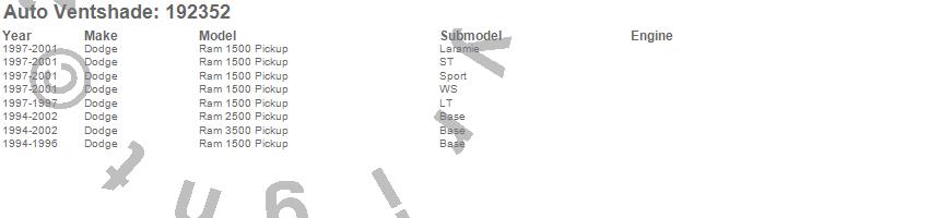 Below is an abbreviated list of applications for the Ventvisor In-Channel Deflector 2 pc..Ram 1500, Ram 2500, Ram 3500, Dodge, 2002, 2001, 2000, 1999, 1998, 1997, 1996, 1995, 1994