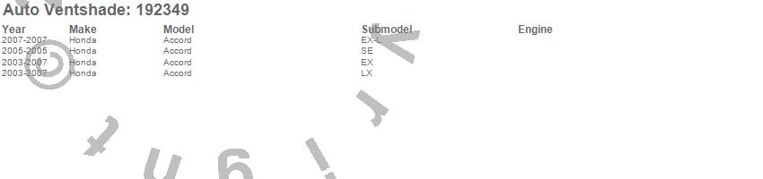 Below is an abbreviated list of applications for the Ventvisor In-Channel Deflector 2 pc..Accord, Honda, 2007, 2006, 2005, 2004, 2003