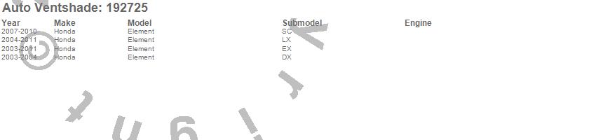 Below is an abbreviated list of applications for the Ventvisor In-Channel Deflector 2 pc..Element, Honda, 2011, 2010, 2009, 2008, 2007, 2006, 2005, 2004, 2003