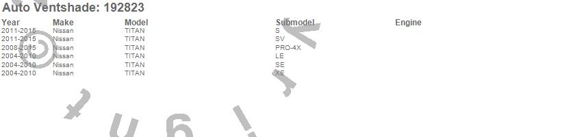 Below is an abbreviated list of applications for the Ventvisor In-Channel Deflector 2 pc..TITAN, Nissan, 2015, 2014, 2013, 2012, 2011, 2010, 2009, 2008, 2007, 2006, 2005, 2004