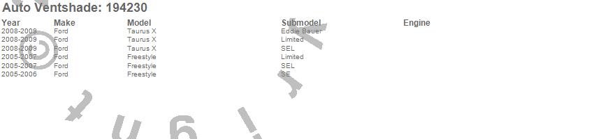 Below is an abbreviated list of applications for the Ventvisor In-Channel Deflector 4 pc..Freestyle, Taurus X, Ford, 2009, 2008, 2007, 2006, 2005