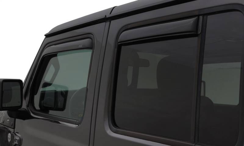 Below is an abbreviated list of applications for the Ventvisor In-Channel Deflector 4 pc..Wrangler (JK), Jeep, 2018, 2017, 2016, 2015, 2014, 2013, 2012, 2011, 2010, 2009, 2008, 2007