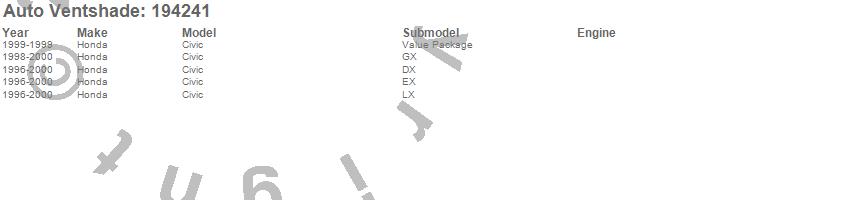 Below is an abbreviated list of applications for the Ventvisor In-Channel Deflector 4 pc..Civic, Honda, 2000, 1999, 1998, 1997, 1996