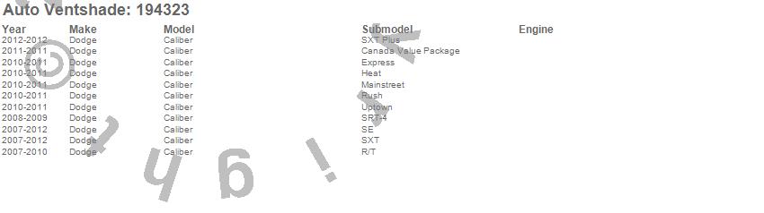 Below is an abbreviated list of applications for the Ventvisor In-Channel Deflector 4 pc..Caliber, Dodge, 2012, 2011, 2010, 2009, 2008, 2007