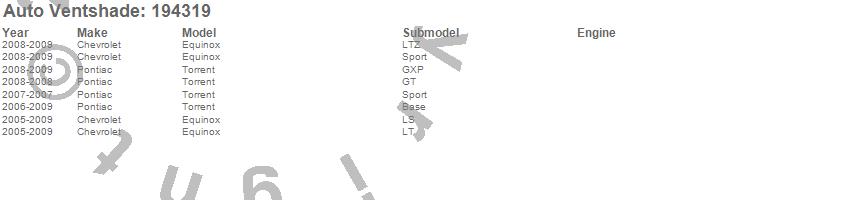 Below is an abbreviated list of applications for the Ventvisor In-Channel Deflector 4 pc..Equinox, Torrent, Chevrolet, Pontiac, 2009, 2008, 2007, 2006, 2005