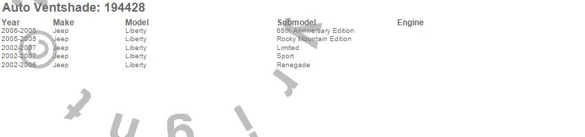 Below is an abbreviated list of applications for the Ventvisor In-Channel Deflector 4 pc..Liberty, Jeep, 2007, 2006, 2005, 2004, 2003, 2002