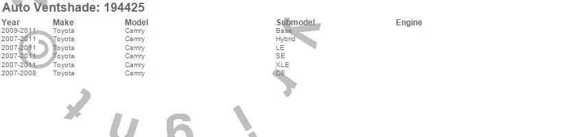 Below is an abbreviated list of applications for the Ventvisor In-Channel Deflector 4 pc..Camry, Toyota, 2011, 2010, 2009, 2008, 2007