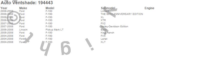 Below is an abbreviated list of applications for the Ventvisor In-Channel Deflector 4 pc..F-150, Mark LT, Ford, Lincoln, 2008, 2007, 2006, 2005, 2004