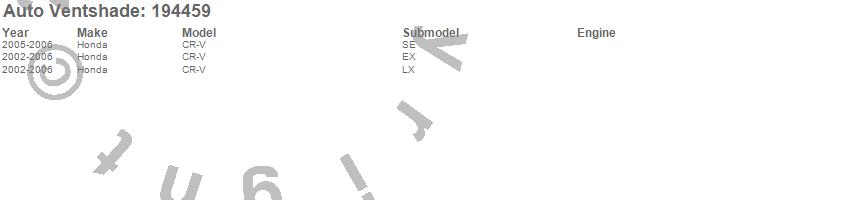 Below is an abbreviated list of applications for the Ventvisor In-Channel Deflector 4 pc..CR-V, Honda, 2006, 2005, 2004, 2003, 2002