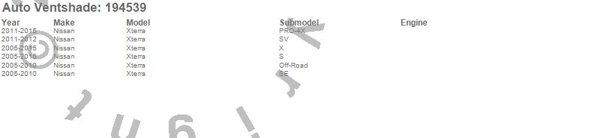 Below is an abbreviated list of applications for the Ventvisor In-Channel Deflector 4 pc..Xterra, Nissan, 2015, 2014, 2013, 2012, 2011, 2010, 2009, 2008, 2007, 2006, 2005