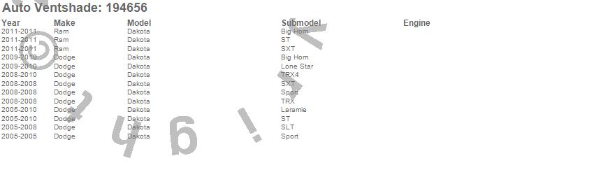 Below is an abbreviated list of applications for the Ventvisor In-Channel Deflector 4 pc..Dakota, Dodge, Ram, 2011, 2010, 2009, 2008, 2007, 2006, 2005