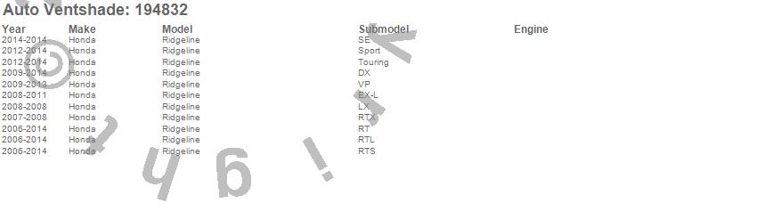 Below is an abbreviated list of applications for the Ventvisor In-Channel Deflector 4 pc..Ridgeline, Honda, 2014, 2013, 2012, 2011, 2010, 2009, 2008, 2007, 2006