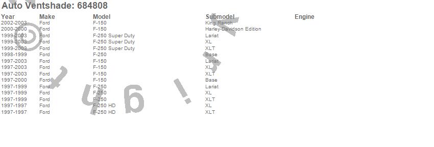 Below is an abbreviated list of applications for the Chrome Ventvisor Deflector 4 pc..F-150, F-250, F-250 HD, F-250 Super Duty, Ford, 2003, 2002, 2001, 2000, 1999, 1998, 1997