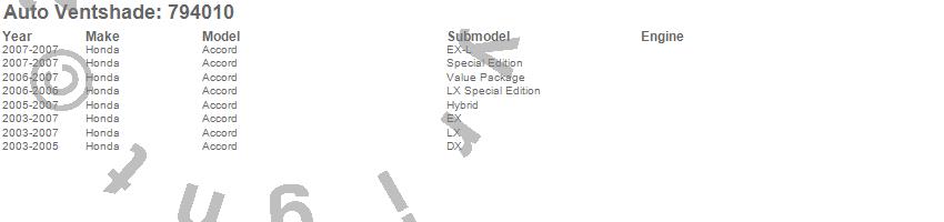 Below is an abbreviated list of applications for the Ventvisor Low Profile Deflector 4 pc..Accord, Honda, 2007, 2006, 2005, 2004, 2003