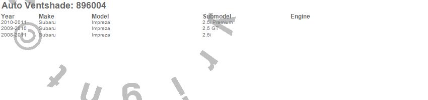 Below is an abbreviated list of applications for the Ventvisor Low Profile Deflector 6 pc..Impreza, Subaru, 2011, 2010, 2009, 2008
