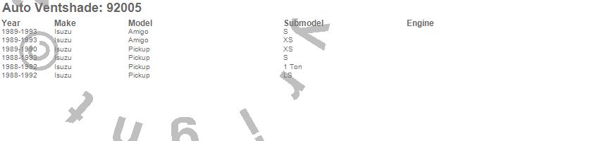 Below is an abbreviated list of applications for the Ventvisor Deflector 2 pc..Amigo, Pickup, Isuzu, 1993, 1992, 1991, 1990, 1989, 1988