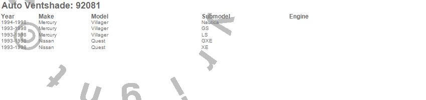 Below is an abbreviated list of applications for the Ventvisor Deflector 2 pc..Quest, Villager, Mercury, Nissan, 1998, 1997, 1996, 1995, 1994, 1993