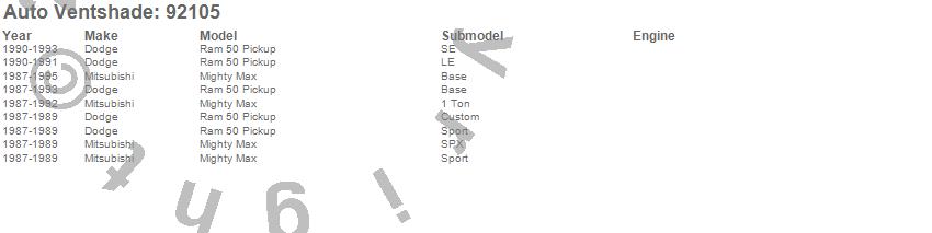 Below is an abbreviated list of applications for the Ventvisor Deflector 2 pc..Mighty Max, Ram 50 Pickup, Dodge, Mitsubishi, 1995, 1994, 1993, 1992, 1991, 1990, 1989, 1988, 1987