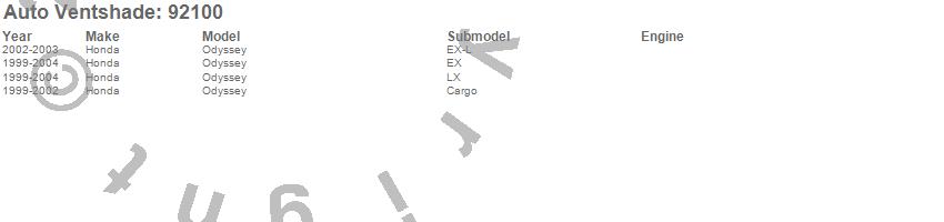 Below is an abbreviated list of applications for the Ventvisor Deflector 2 pc..Odyssey, Honda, 2004, 2003, 2002, 2001, 2000, 1999