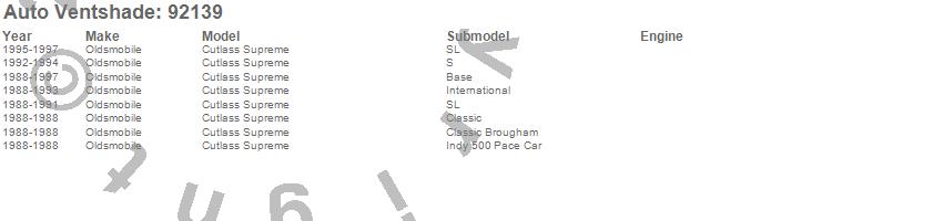 Below is an abbreviated list of applications for the Ventvisor Deflector 2 pc..Cutlass Supreme, Oldsmobile, 1997, 1996, 1995, 1994, 1993, 1992, 1991, 1990, 1989, 1988