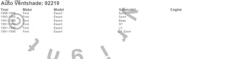 Below is an abbreviated list of applications for the Ventvisor Deflector 2 pc..Escort, Ford, 1996, 1995, 1994, 1993, 1992, 1991