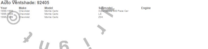Below is an abbreviated list of applications for the Ventvisor Deflector 2 pc..Monte Carlo, Chevrolet, 1999, 1998, 1997, 1996, 1995