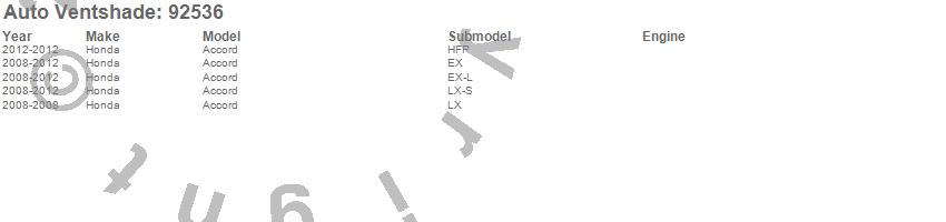Below is an abbreviated list of applications for the Ventvisor Deflector 2 pc..Accord, Honda, 2012, 2011, 2010, 2009, 2008