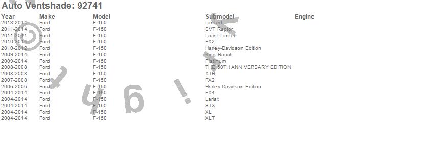 Below is an abbreviated list of applications for the Ventvisor Deflector 2 pc..F-150, Ford, 2014, 2013, 2012, 2011, 2010, 2009, 2008, 2007, 2006, 2005, 2004