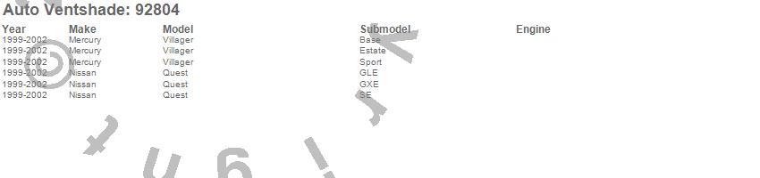 Below is an abbreviated list of applications for the Ventvisor Deflector 2 pc..Quest, Villager, Mercury, Nissan, 2002, 2001, 2000, 1999