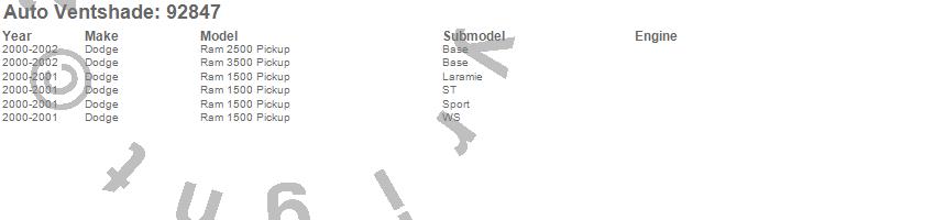 Below is an abbreviated list of applications for the Ventvisor Deflector 2 pc..Ram 1500, Ram 2500, Ram 3500, Dodge, 2002, 2001, 2000