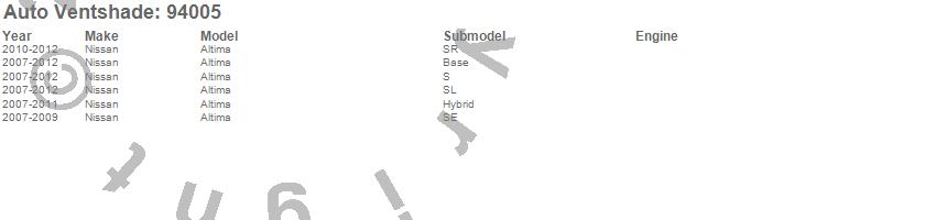 Below is an abbreviated list of applications for the Ventvisor Deflector 4 pc..Altima, Nissan, 2012, 2011, 2010, 2009, 2008, 2007