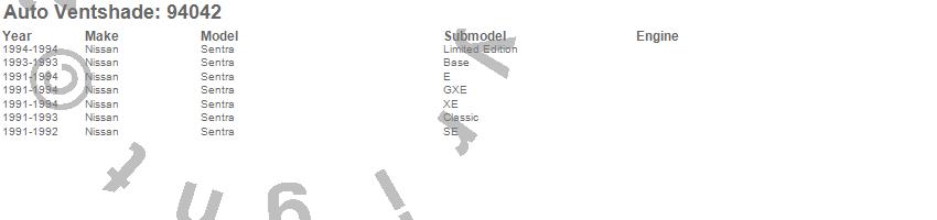 Below is an abbreviated list of applications for the Ventvisor Deflector 4 pc..Sentra, Nissan, 1994, 1993, 1992, 1991